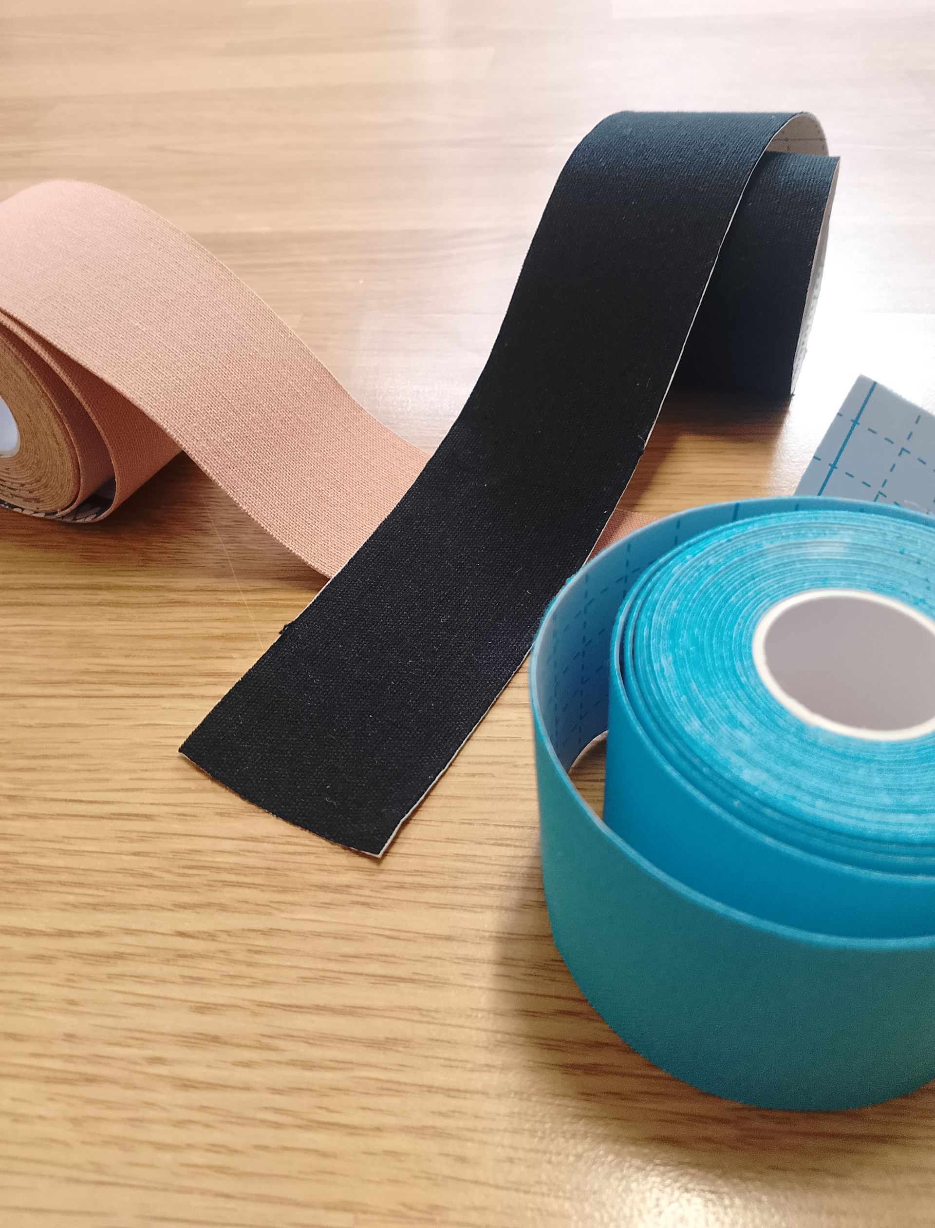 Bedeutet: Aufkleben von flexiblen Baumwollbändern auf die Haut.